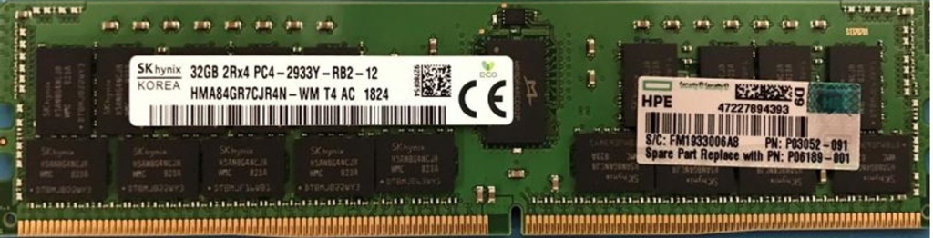 HPE 32Gb 2Rx4 PC4-3200AA DDR4 ECC Registered Smart Memory Kit (P18450-B21, P03052-091)